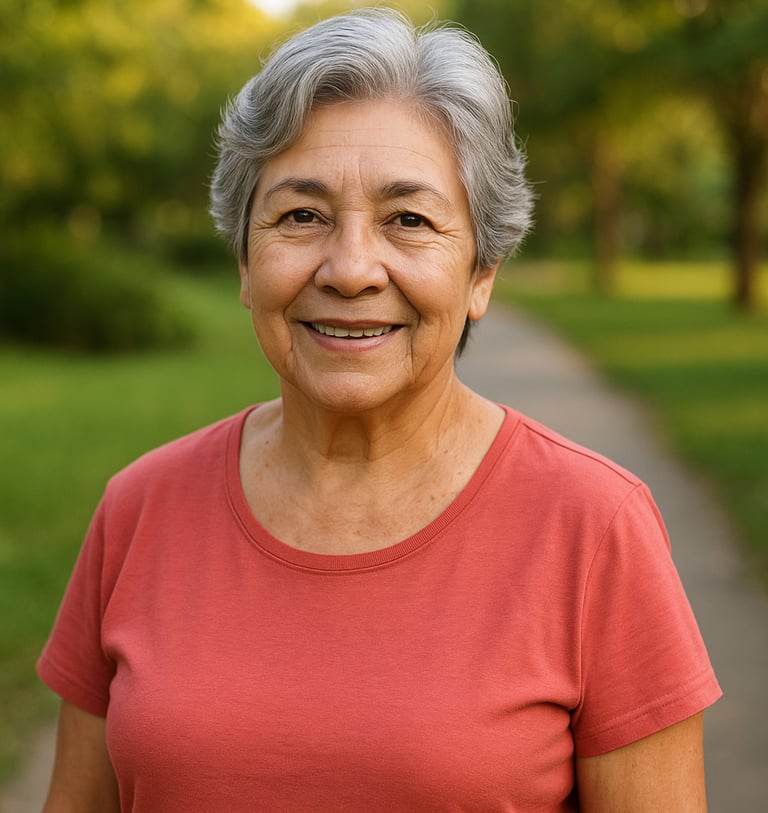 Hoje, Maria Helena voltou a caminhar no parque, consegue subir escadas sem medo e até brinca com os netos novamente — sem dor e sem depender de remédios.